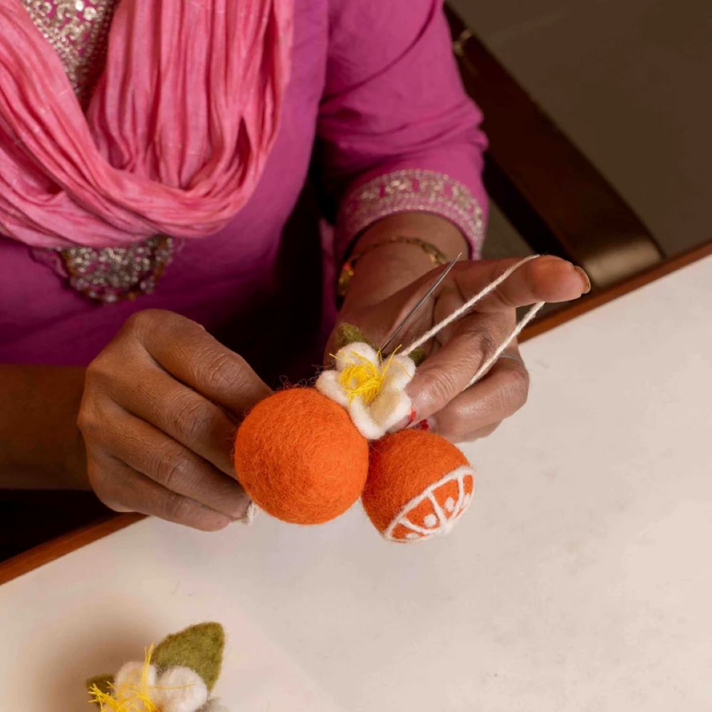 De vilten vruchten hangen aan een stevig touwtje en zijn eenvoudig op te hangen aan een deurknop, haakje of kast. Ook zijn ze perfect als voorjaarsdecoratie in een (paas)tak, waar ze zorgen voor een vrolijk, natuurlijk accent. Deze vilten fruitdecoratie past mooi in de woonkamer, keuken, hal of kinderkamer en is geschikt als duurzame woondecoratie voor elk seizoen.