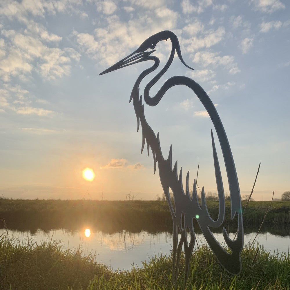 Dit kunstwerk is een unieke toevoeging, zowel binnen als buiten. Deze prachtige Reiger, ontworpen en gemaakt in Nederland, steek je zo met de twee prikkers in de tuingrond. Hij brengt meteen gezelligheid en sfeer in elke ruimte! Het is dan ook een perfect cadeau voor iedere vogelliefhebber!