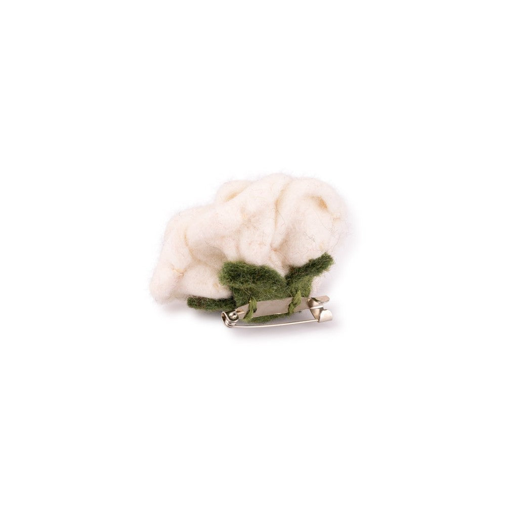 Een unieke vilten broche met de hand gemaakt van het fijnste wol
