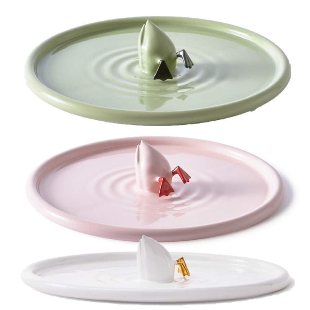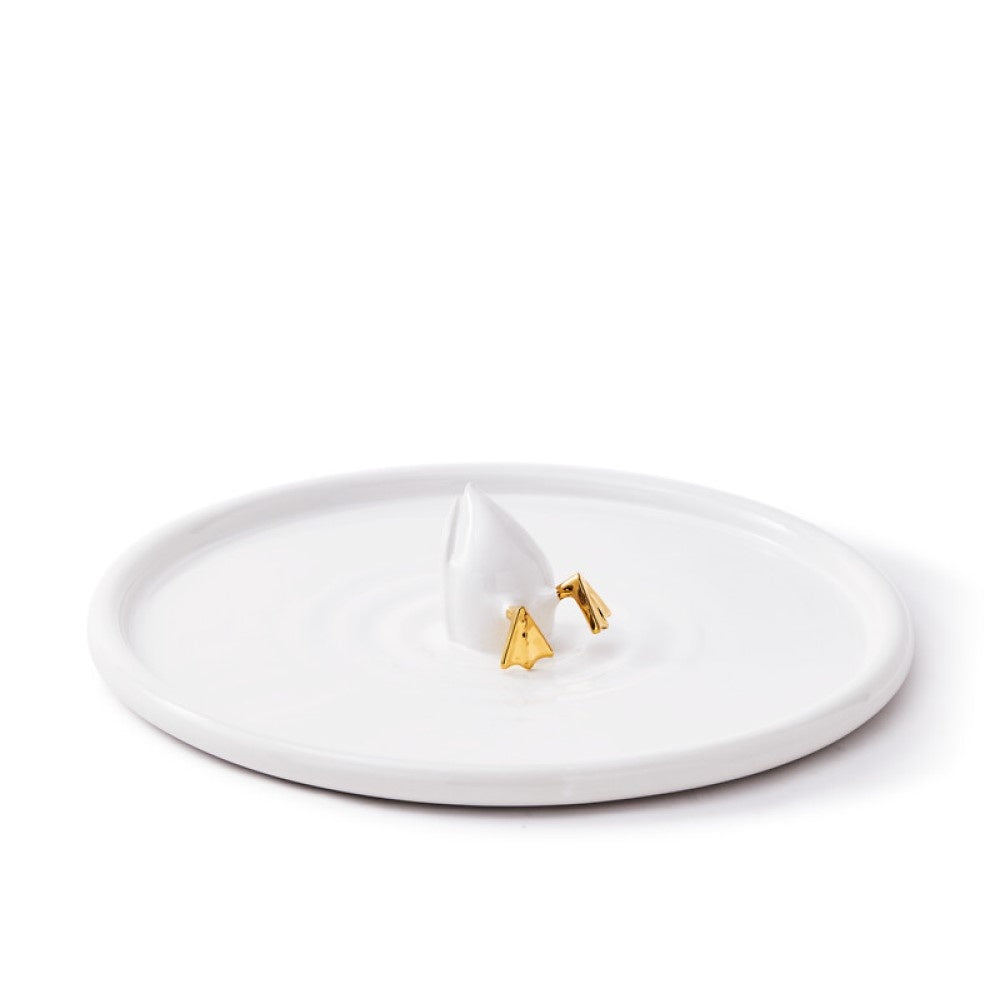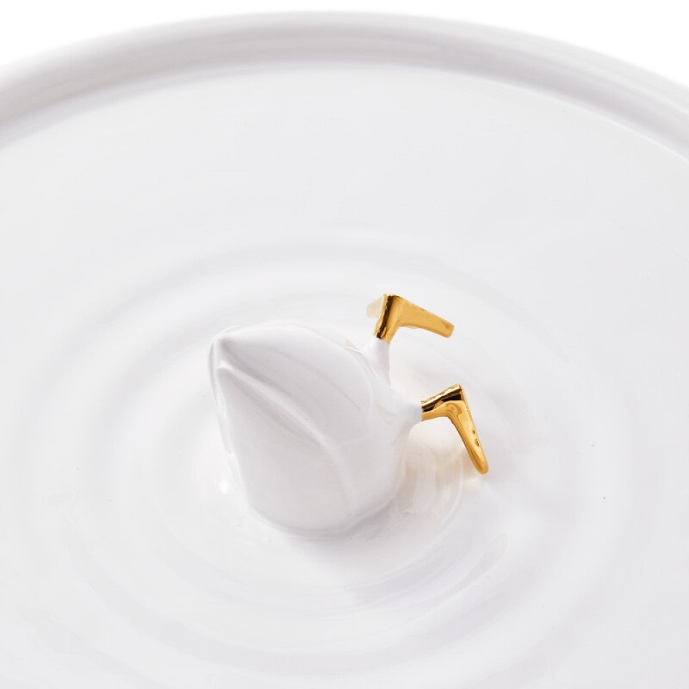 Diving Duck serving plate is a charming piece of ceramic that adds a touch of "natural elegance" to your dining experience. This cute diving duck, named Daffy, adapts perfectly to any situation; from fruit bowl to cake tin. And that Daffy provides plenty of conversation will come as no surprise!