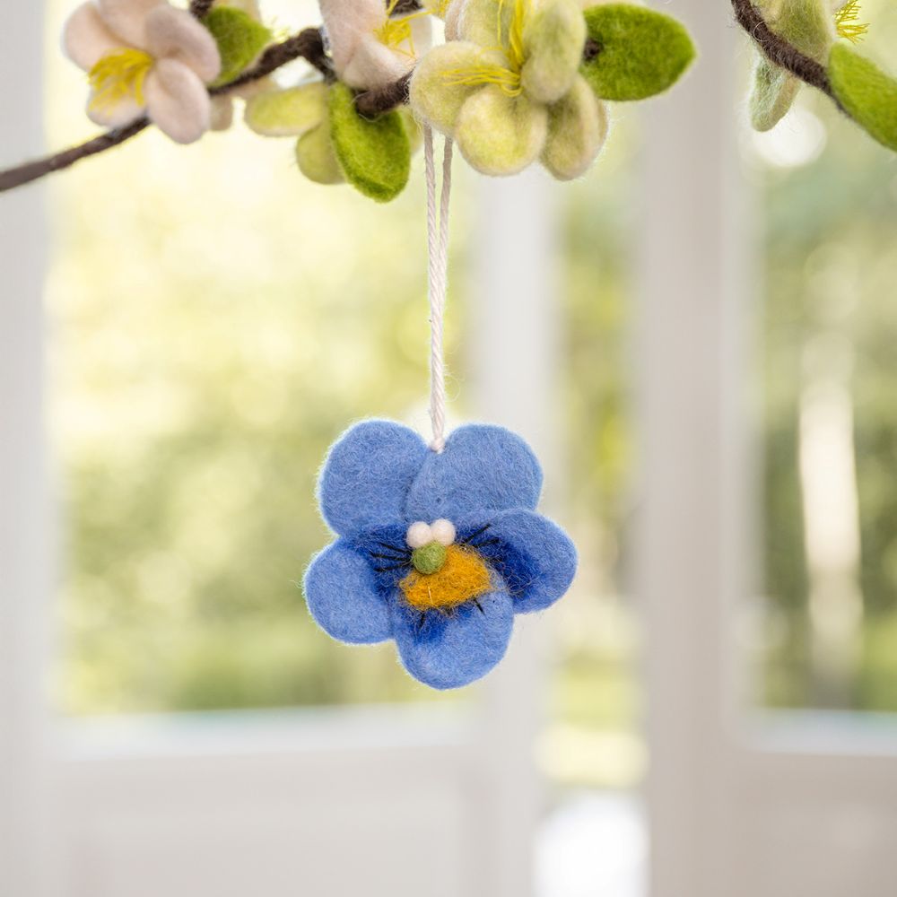 Set van 6 vilten viooltjes hangers – vrolijke voorjaarsdecoratie ✿