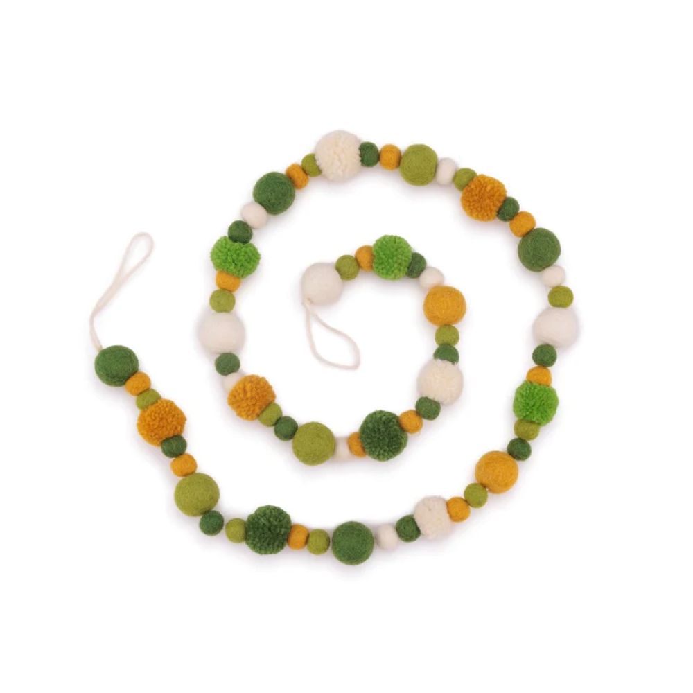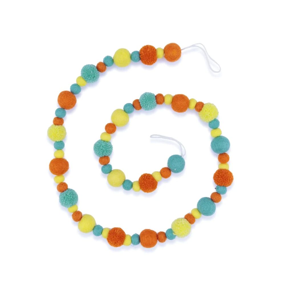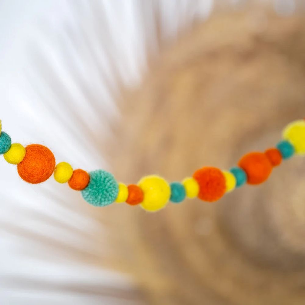 Een (seizoen)tafel decoreren, slaapkamer opfleuren, (paas)tak versieren of een gezellig feestje? Met deze slingers, op fairmade en fairtrade wijze gemaakt van wolvilten balletjes en pompoms in allerlei vrolijke kleuren, kan het allemaal!