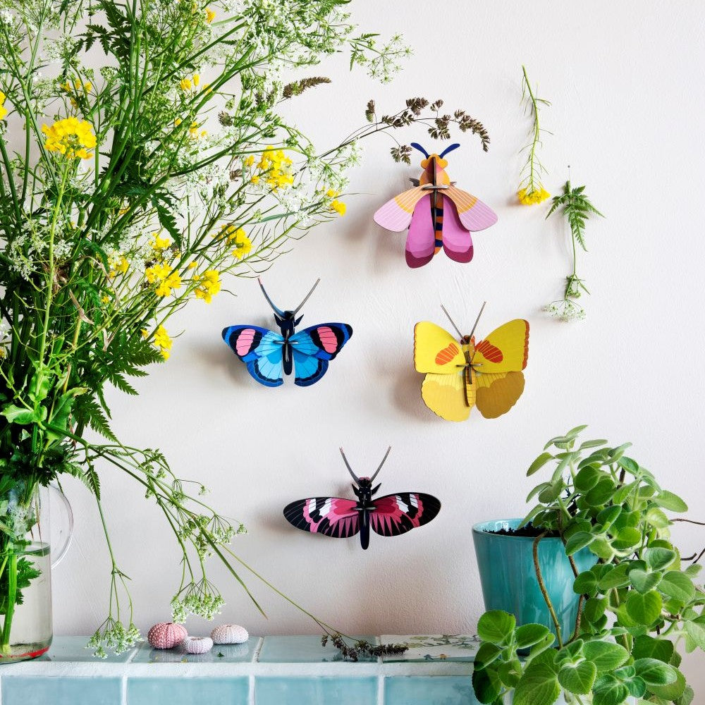 No matter how small, insects are extremely important to the earth! With these colorful butterflies with bright graphic patterns, you allow it to add a bit of beauty to both your interior and the world! Printed on recycled cardboard.