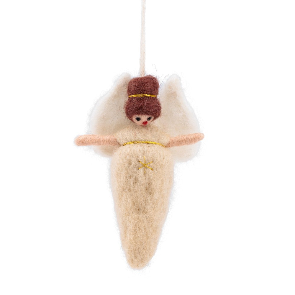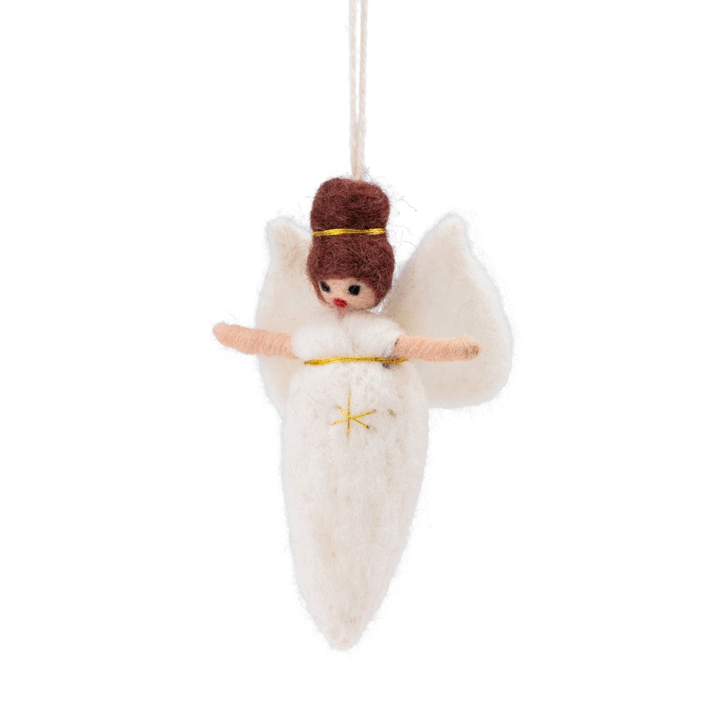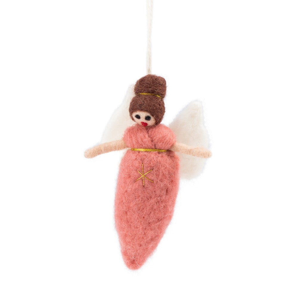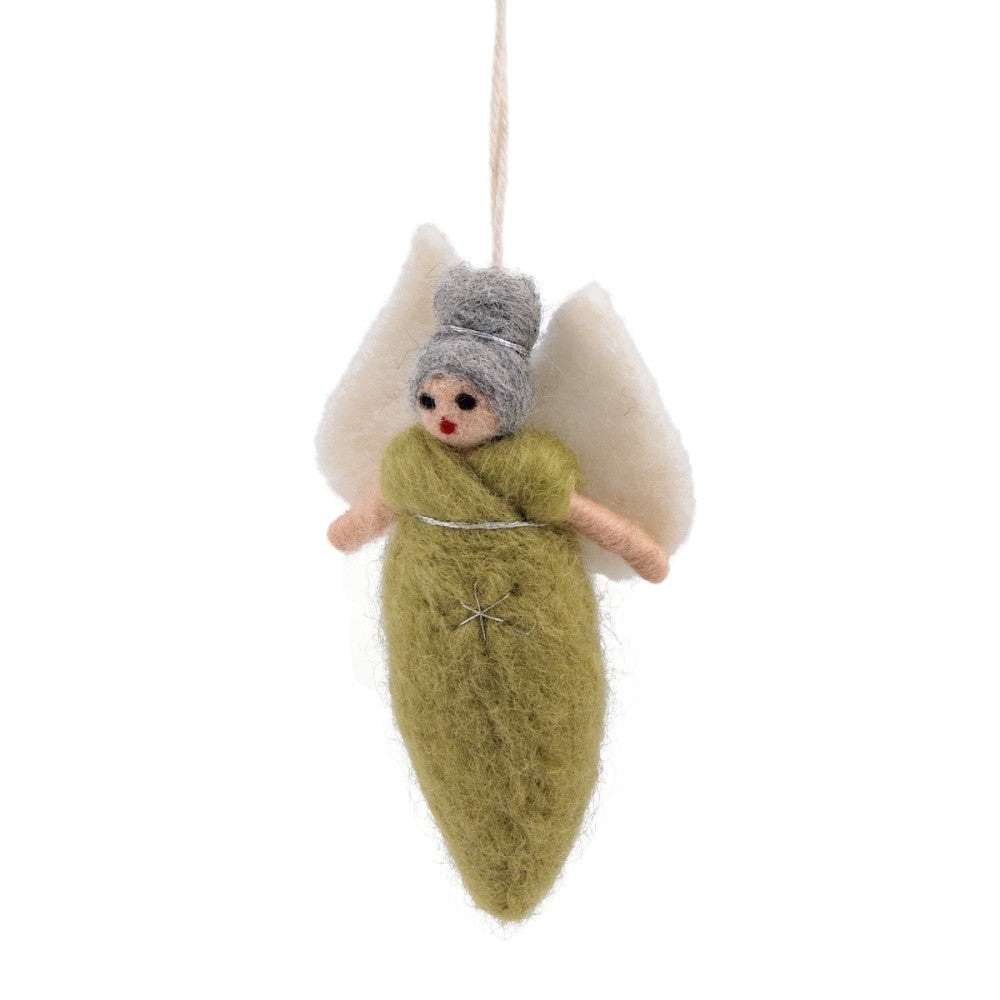 Perfect om op te hangen in de kerstboom, aan een sierlijke tak of als symbolisch cadeau voor iemand die je dierbaar is. Elk engeltje is met zorg met de hand gemaakt van wolvilt, waardoor geen twee precies hetzelfde zijn — een uniek stukje ambacht met een mooi verhaal.