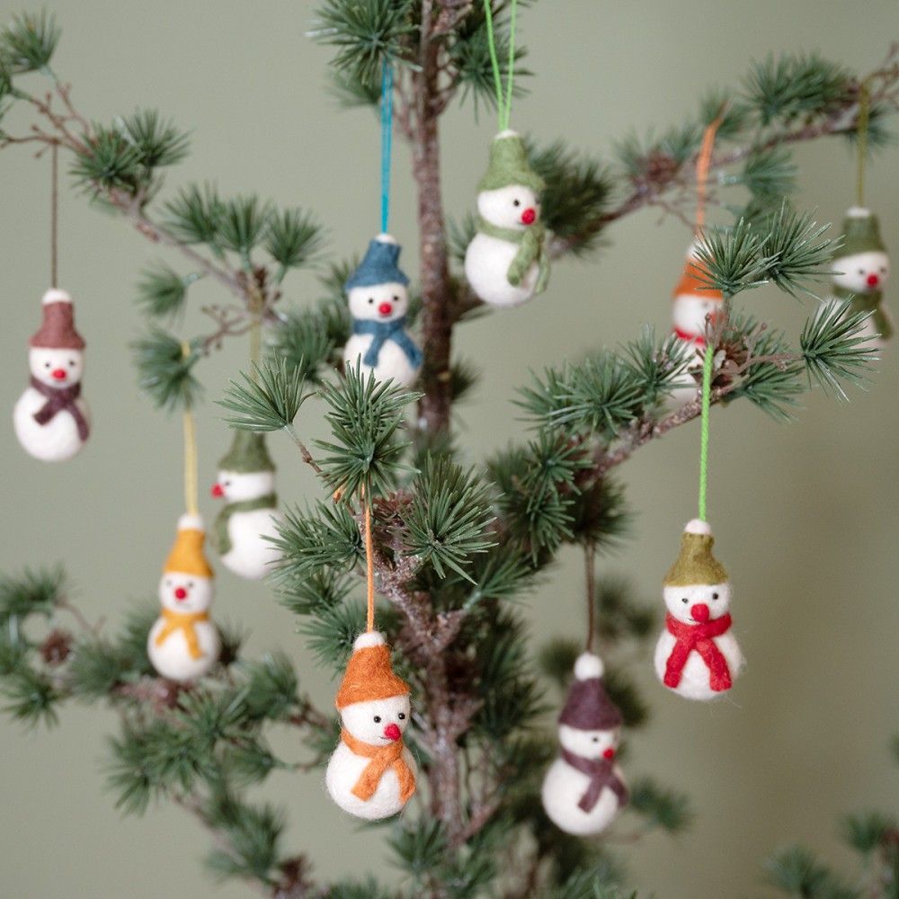 Wil je wat vrolijkheid toevoegen aan je kerstinterieur, dan zijn deze sneeuwpopjes een mooie toevoeging. Een samengestelde assorti van 10 stuks uitgevoerd in warme aardetinten. Welke kleuren? dat is een verassing! Op fairmade en fairtrade wijze gemaakt!