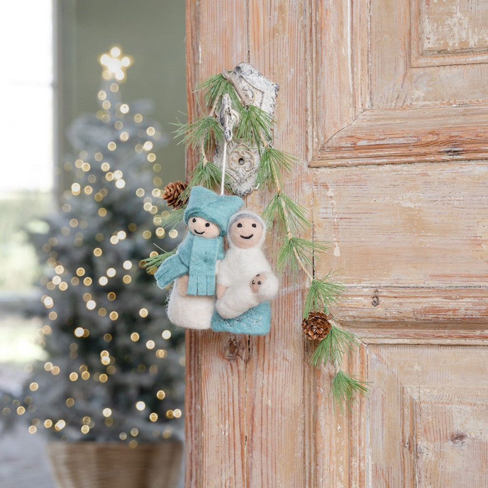 Deze vilten kersthanger Jozef & Maria in warme kleuren, zachte natureltinten of een frisse mix van groen en rood vormt een prachtige hanger voor in bijvoorbeeld je kerstboom.