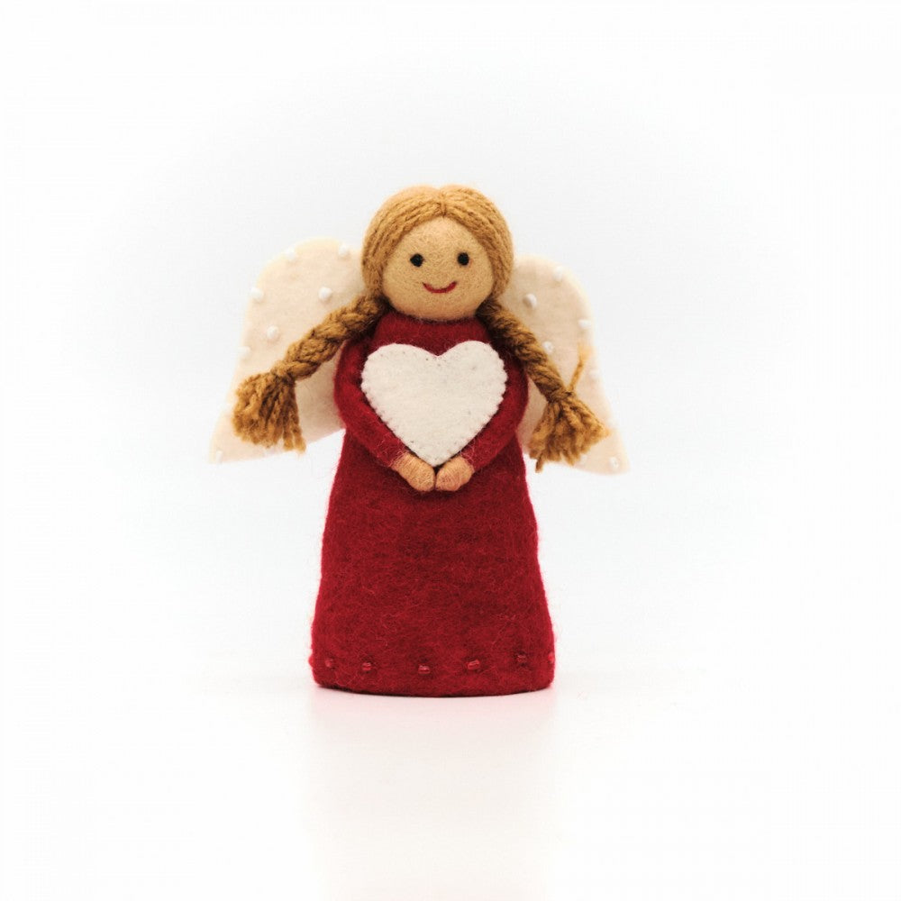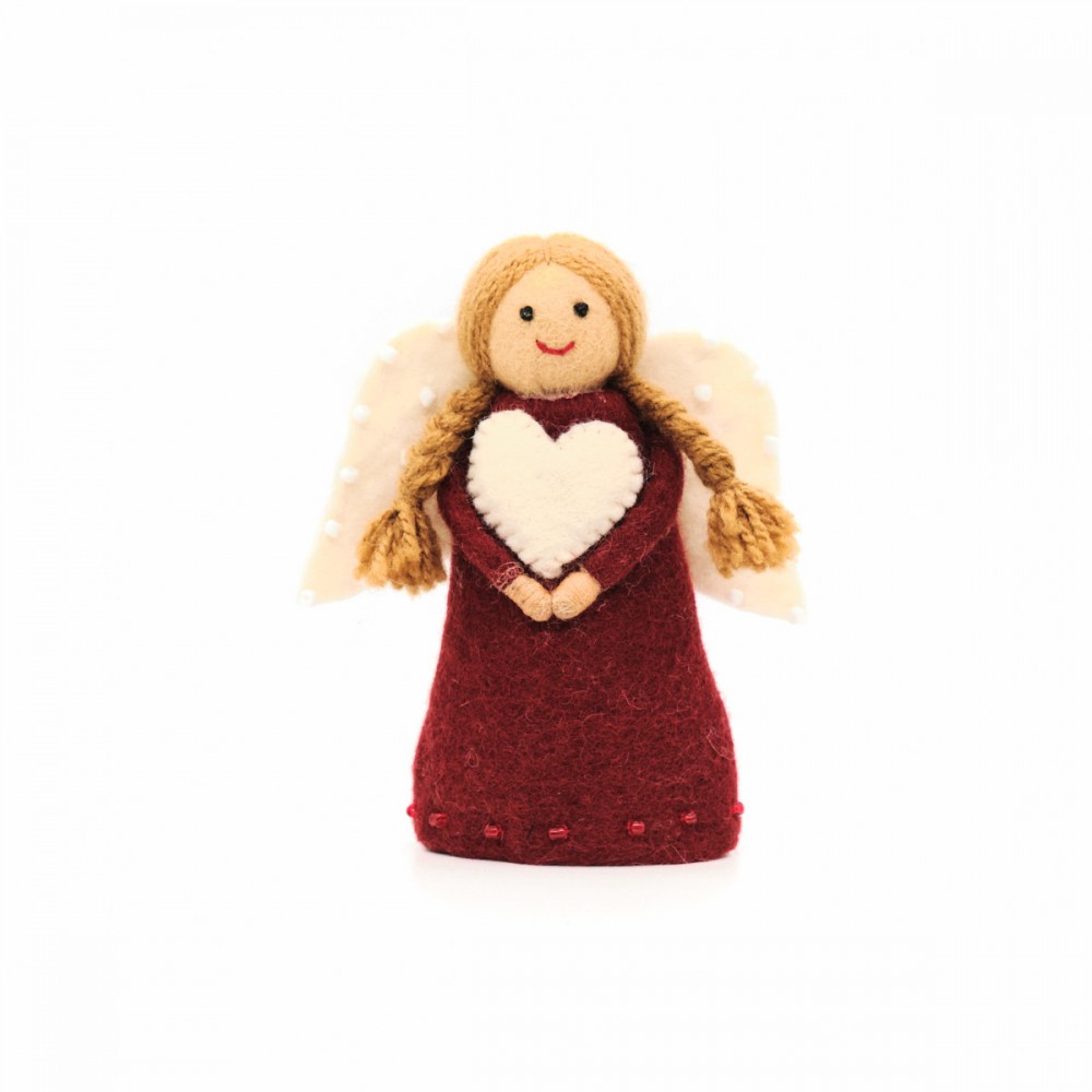 Dit charmante engeltje draagt een elegant jurkje (verkrijgbaar in diverse kleuren), heeft prachtig gevlochten haar en houdt een liefdevol hart in haar handjes. De feestelijk met pareltjes versierde vleugels zorgen voor een sprankelende en verfijnde uitstraling, waardoor dit engeltje een echte blikvanger wordt in elke kerstsetting.