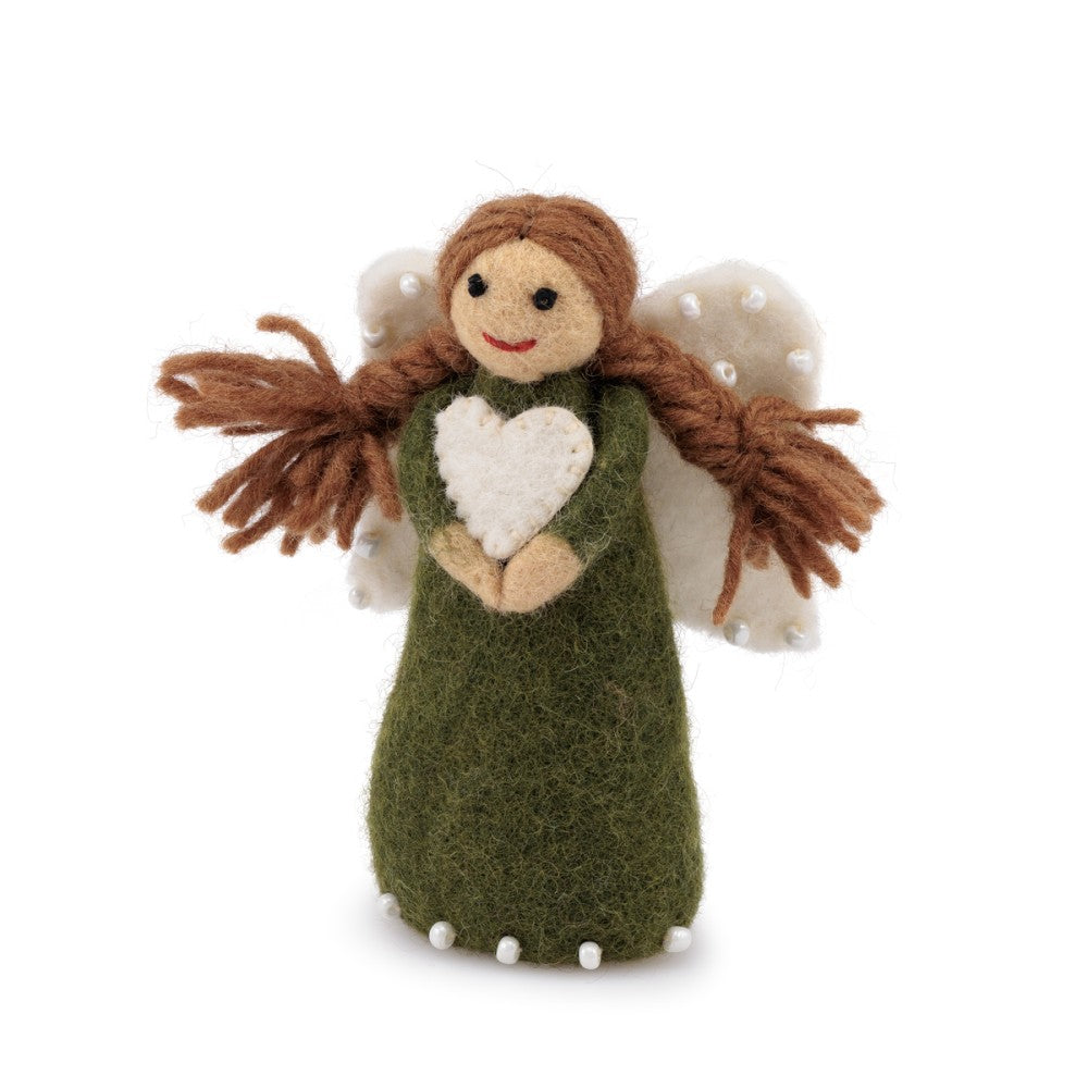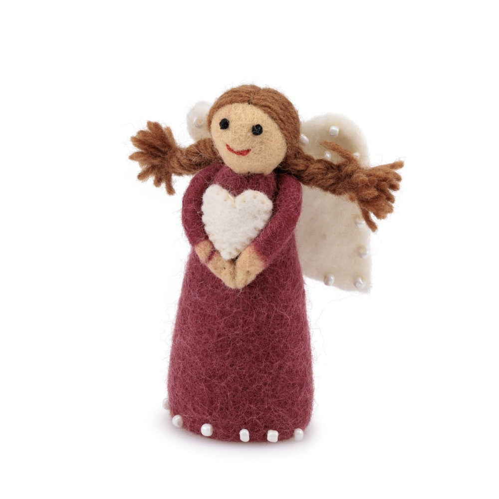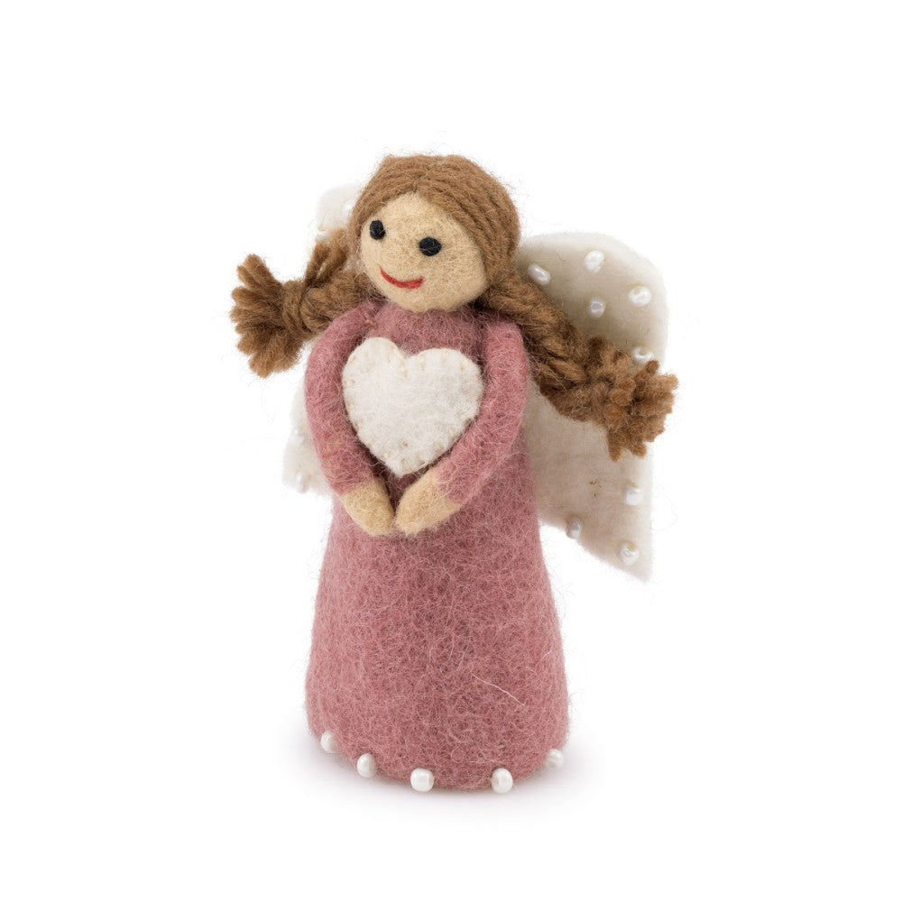 Dit charmante engeltje draagt een elegant jurkje (verkrijgbaar in diverse kleuren), heeft prachtig gevlochten haar en houdt een liefdevol hart in haar handjes. De feestelijk met pareltjes versierde vleugels zorgen voor een sprankelende uitstraling, waardoor dit engeltje een echte blikvanger wordt in elke kerstsetting.