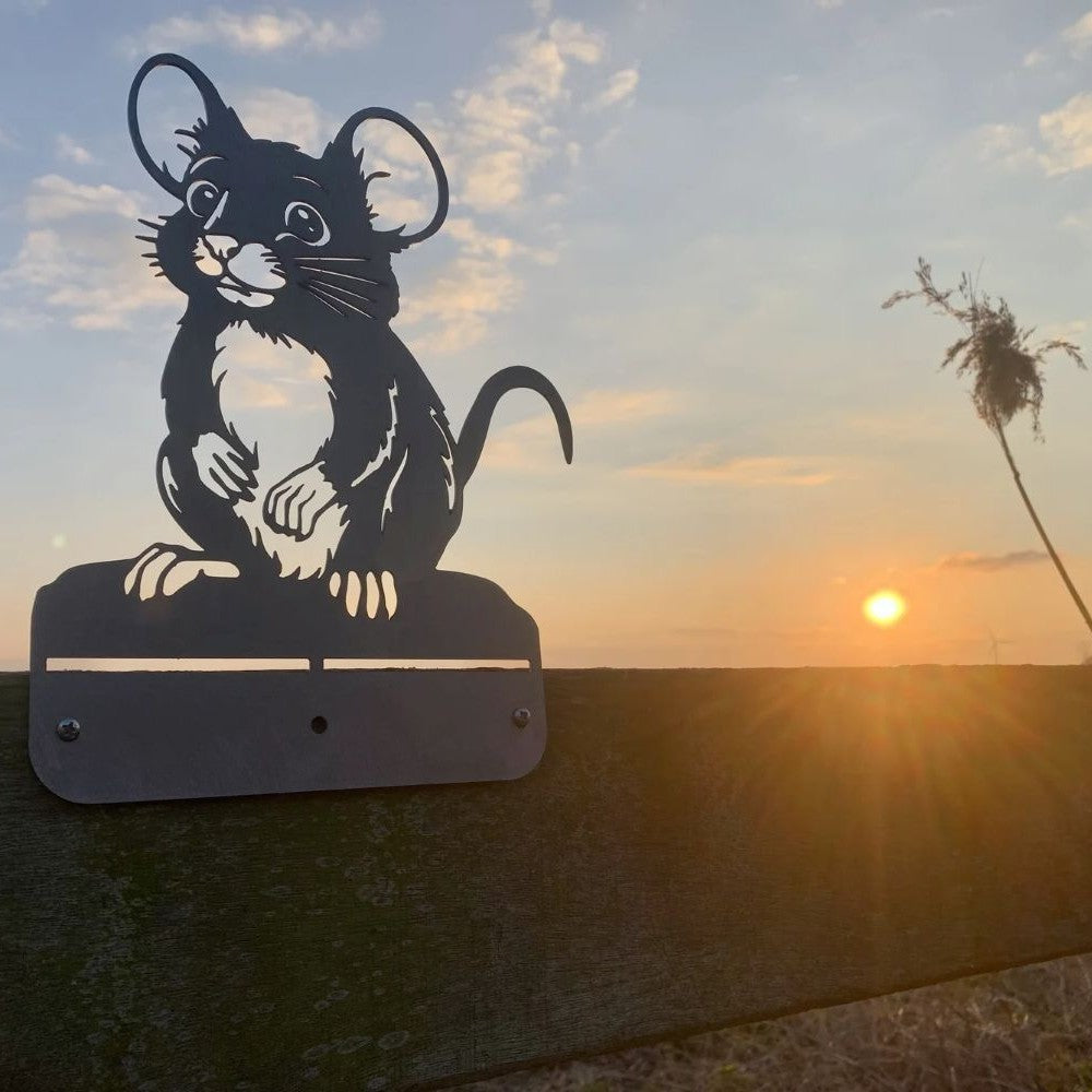Of hij nu tussen de planten scharrelt, stiekem bij de moestuin glipt of op de rand van een bloempot zit, deze muis brengt een vleugje humor en leven in je buitenruimte. Hij is niet bang voor een beetje regen – sterker nog: het duurzame cortenstaal zorgt voor een prachtige, roestige patina die met de tijd alleen maar mooier wordt.