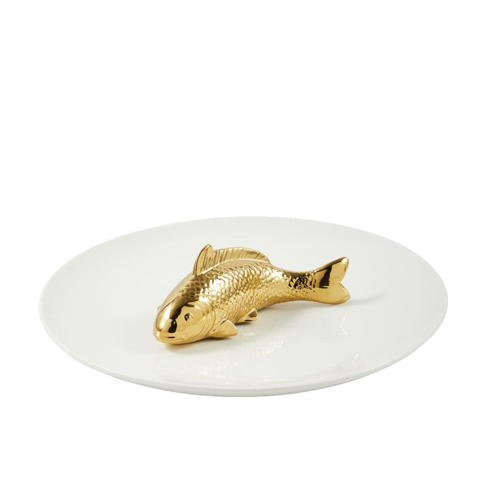 Origineel met een vleugje vijvermagie! Zo kun je het bord Vis met gouden koi-kaper van Pols Potten het best omschrijven. Met een diameter van 40 cm is het is een elegant designstuk dat geheid jouw bijzet- eet- of salontafel opvrolijkt.